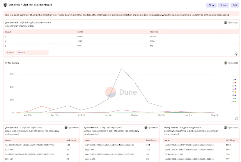 This brought huge revenue to ENS DAO (we had $7 million .eth registration revenue in April, and already have over $5 million within the first week of May). The news about the 10k club was spread across CT and that also brought the number of unique participants (unique Ethereum addresses that hold ENS names) where it grew monthly new users from 33k to 41k.