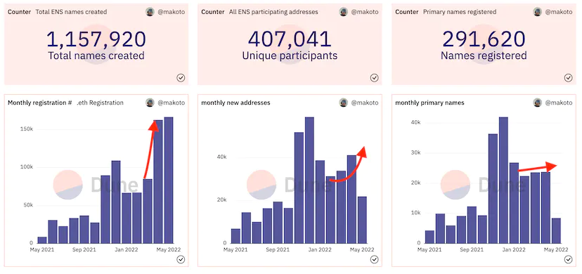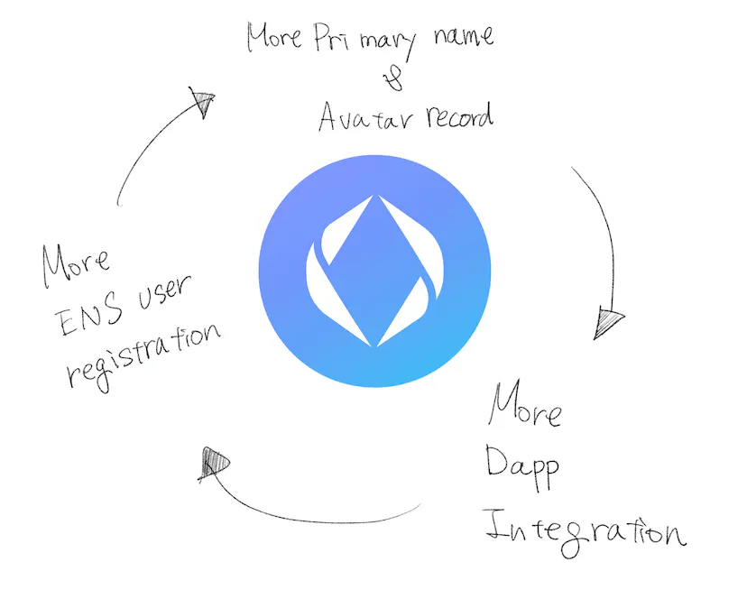I can see the positive cycle that the increase of Primary Name & Avatar record leading to more Integration leading to more ENS user name registration.